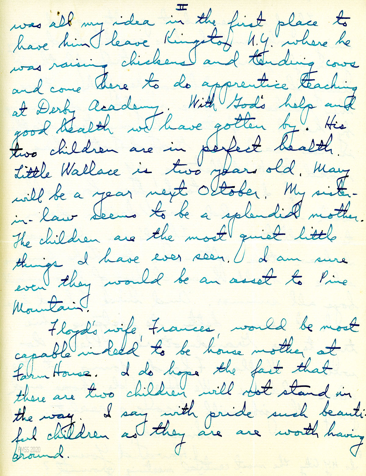 Letters in Part II represent his correspondence with the School following his departure in 1938 from employment at Pine Mountain, including his work at The Blue Ridge Industrial School, Bris, Virginia.