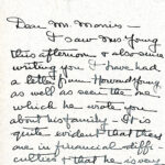 [007] through [007c] June 21, 1934. Three-page letter to Morris from Young. [007] Tells of his brother’s repair work at Derby Academy; [007a] states that Floyd is “intensely interested” in working at PMSS. [007b] Floyd’s wife, Frances, could be housemother at Farm House; describes their two children. [007c] Asks Morris to write to his brother.