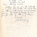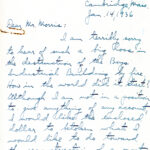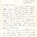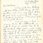 [022] through [022b] June 1, 1936. Three-page letter to Morris from Young in Cambridge, MA. [022] “We had such a satisfactory interview in New York that my thinking of withdrawing my application must cause you consternation.” Describes his uncertainty about whether or not he belongs in the ministry. [022a] He feels he should “stick to it [his ministry studies] now that I have begun, and especially since I am thirty-two.” Asks for Morris’s counsel. [022b] Gives address in Soo Nipi Park, NH, where he will have a summer job. Miss Colgate will contact Morris about placing her protege, Edward McCurry, at PMSS. Sends greetings from Russell Dicks.