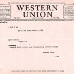 [020] May 24, 1936. Western Union Telegram from Morris to Young, telling Young their meeting arrangements.