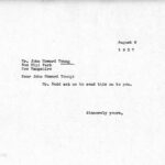 [051] August 7, 1937. To Young from [unsigned – Morris]. Since Young suggests picking up workers on the way to PMSS, he suggests Miss Josephine Merrill (sister of Mrs. Bartlett), now in Newport, NH, and Miss Edith Cold, who is attending Hillside College in Middlebury, VT.
