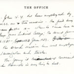 [056] N.D. Unsigned handwritten draft with edits on “The Office”notepaper, confirming that Mr. John H.Y. has been employed by P.M.S.S. twice, as an Antioch cooperative student teacher and as a housefather and teacher from September 1937 until June 1939. “Mr. Young is conscientious and thorough in everything he does.”