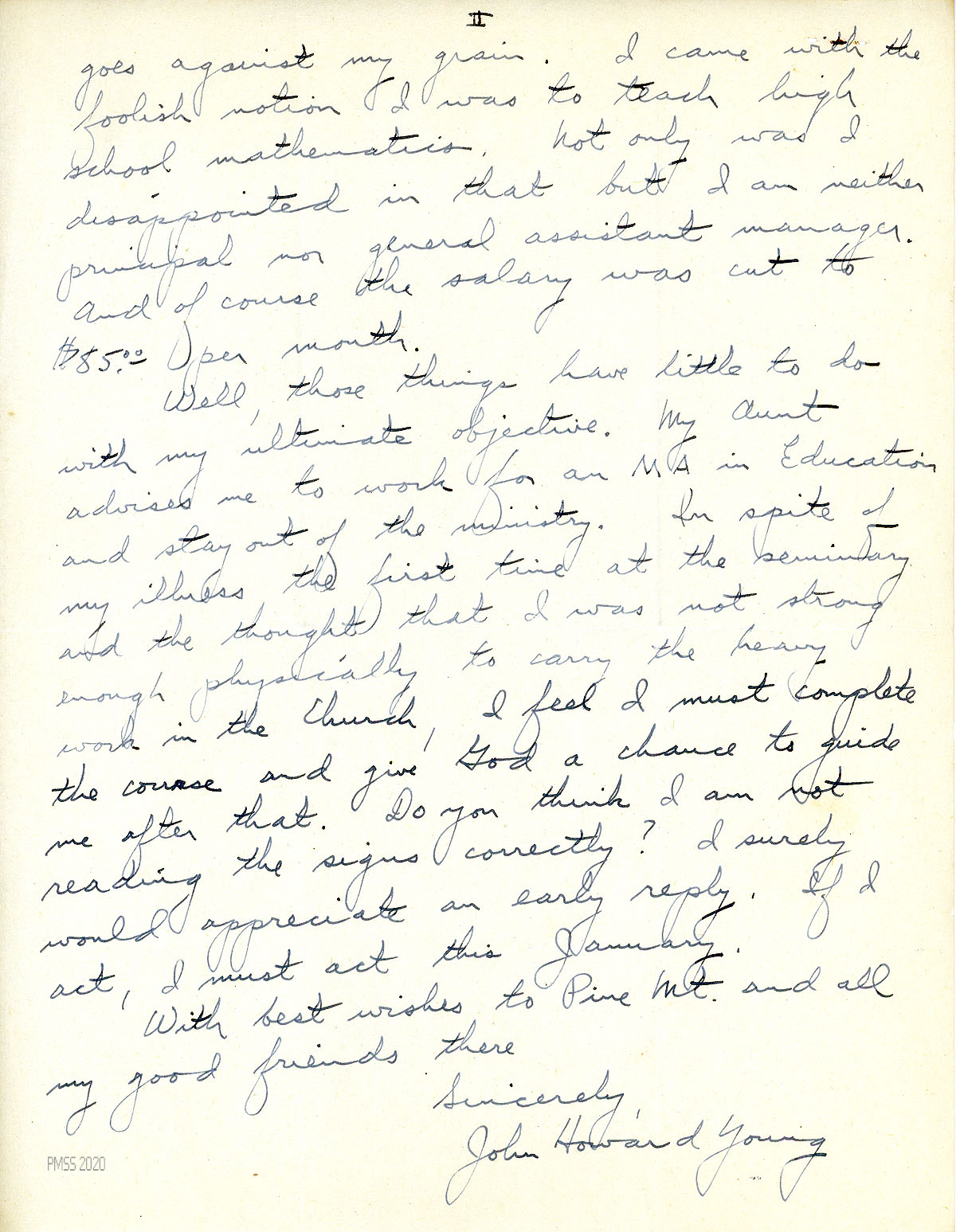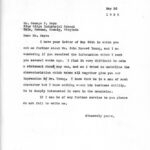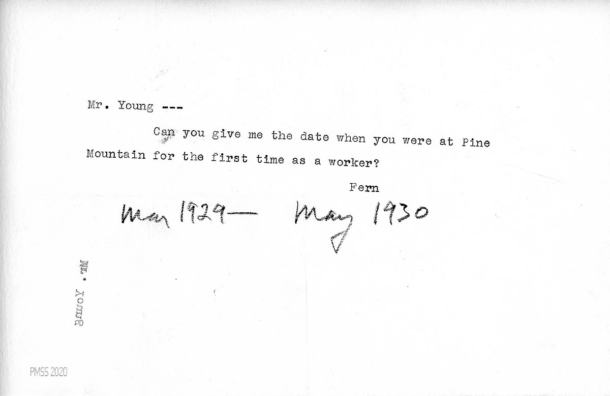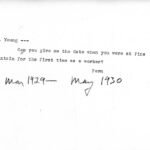 [009] N.D. To Young from Fern Hall, PMSS Secretary, asking for the date when he was first at PMSS; handwritten notation “May 1929-May 1930.”