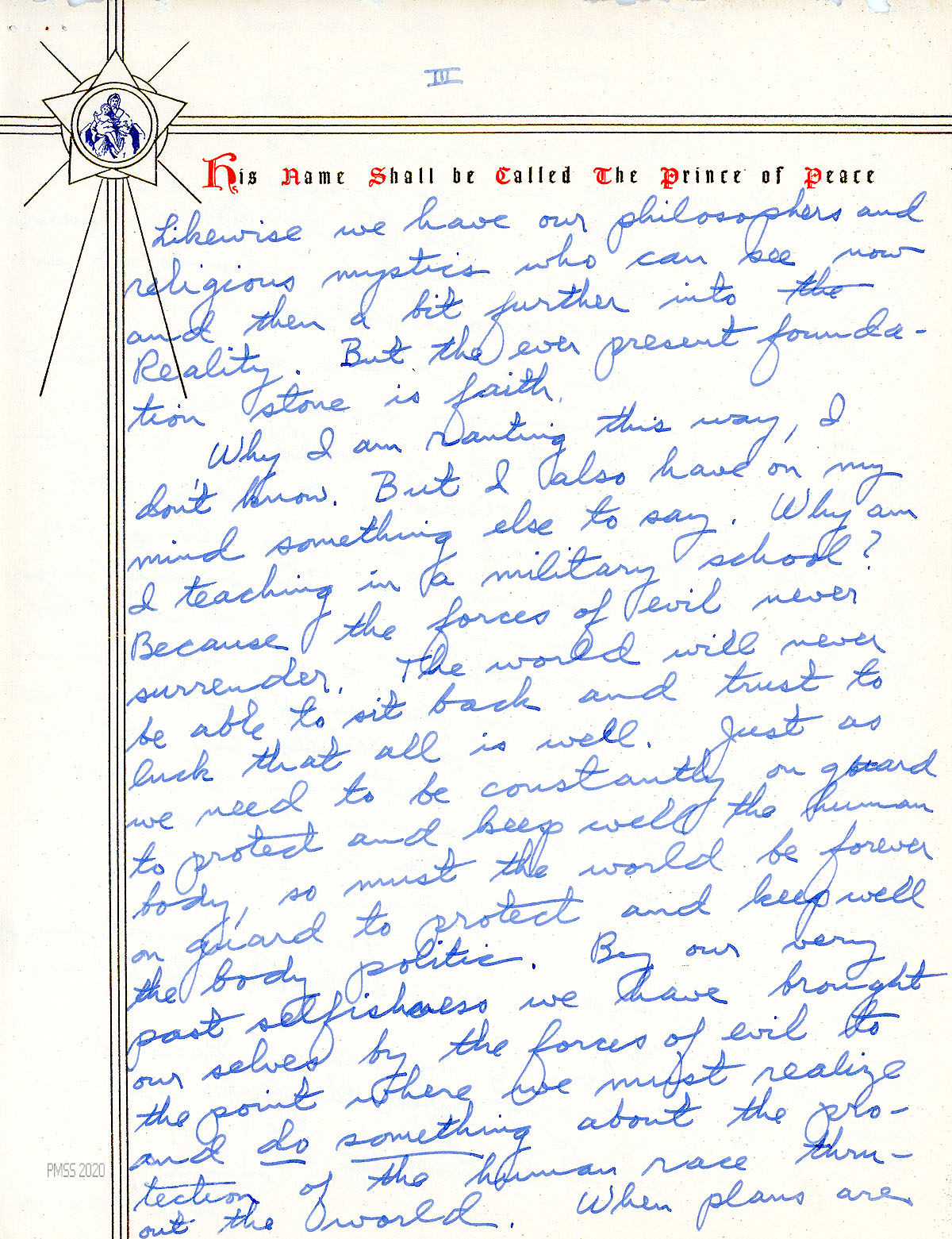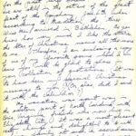 [037] through [037f] January 10, 1942. Seven-page letter to “Glyn” [Morris] from Young at SMA, Staunton, VA, [037] who was very impressed when he read in the PMSS Notes “of your first celebration of the Holy Communion in the Chapel. How I would like to have been there! Before I die I trust I may see and take part in not only the celebration of the Eucharist according to the use of the Anglican Communion, but also the service of the consecration of the altar in the beautiful Pine Mt. Chapel.” [037a] Encloses a poem; spent vacation in eastern North Carolina with Bris, VA, friends. [037b] Young is happy at SMA, stating “This [teaching] is my vocation. At last I can revel in the field I love — mathematics. Next to that, as you might know, comes Theology. Together they go hand in hand and are the keys to the Universe and the meaning of life. …” [037c] He further explains that concept. [037d] Explains why he is teaching in a military school: “Because the forces of evil never surrender. …” [037e] Asks to visit PMSS along with 4 cadets. Remembers the “Friday night faculty parties at Zande House.” Encloses his contribution to PMSS.