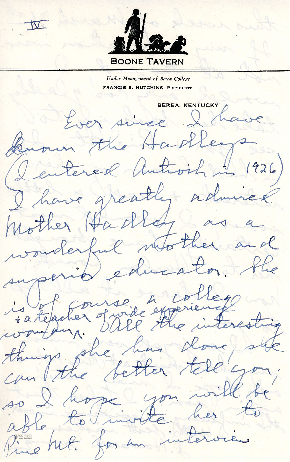 [044] through [044g] March 29, 1947. Nine-page letter to Mr. Benjamin from Young, regretting that he had to leave PMSS suddenly during his visit. [044b] En route to Asheville, he visited an Antioch classmate, Jarvis Hadley, [044c] whose mother, Mrs. Ruth Hadley, was visiting from Shelburne Falls, MA. She is interested in a position at PMSS and would like to visit. [044d], [044e], [044f] Young highly recommends her as a teacher or housemother and hopes Benjamin will interview her. [044g] Young “trusts the influenza epidemic is over.”