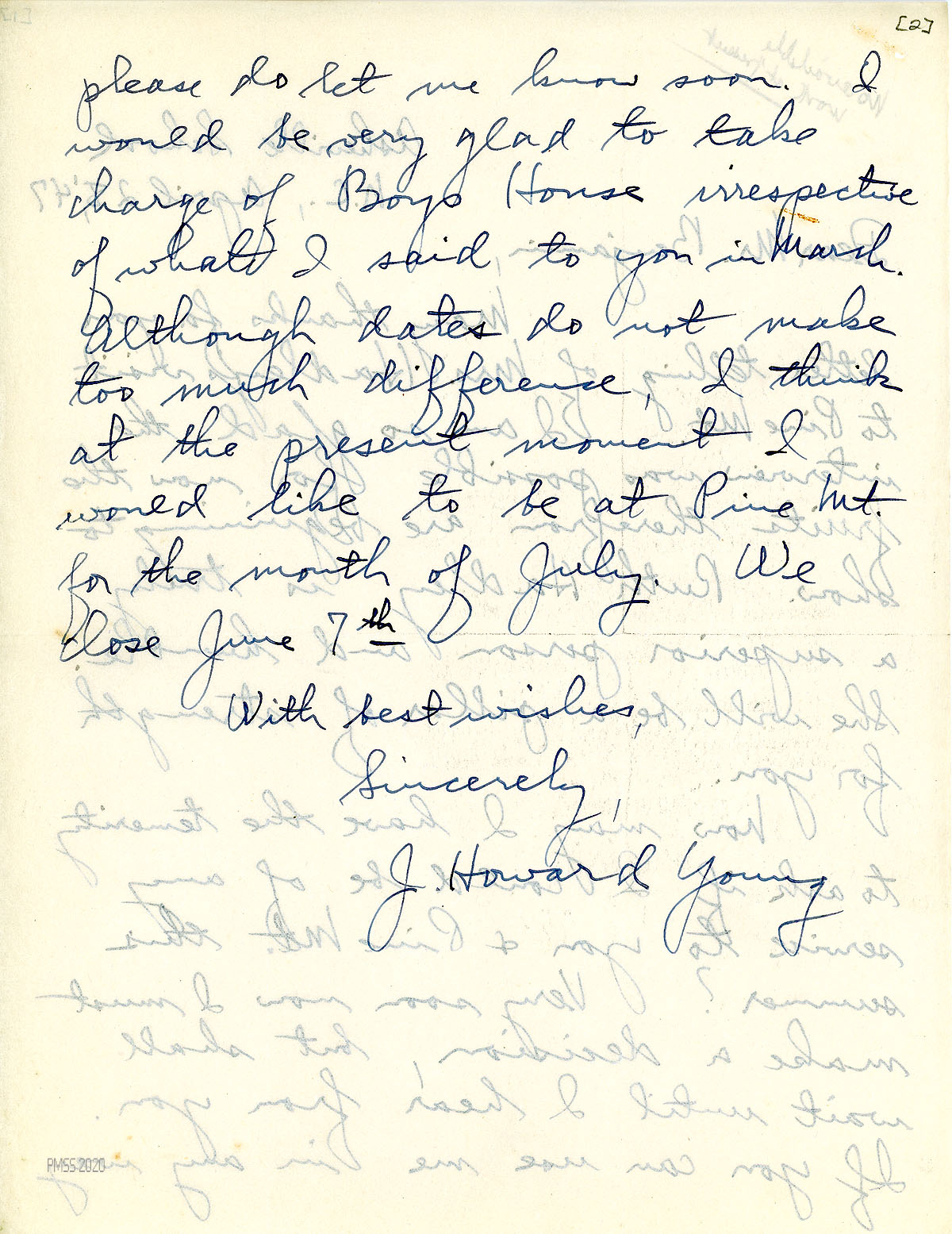 [031] July 23, 1940. To Young from [unsigned – Morris], who cannot offer Young a position at PMSS this year. Mentions building Laurel House II and a new girl’s house.