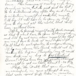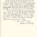 [019 through 019c] August 11, 1943. Four-page letter to Mr. and Mrs. [William D.] Webb from Bishop, [019] who appreciated Webb’s letter with news “from home.” Describes plans to leave for Berea for a visit en route to PMSS. “Jimmy” needs to arrive early for the [019a, page 2] school catalogue printing job. Mentions that her injured arm is slowly improving. Tells of her plans to “go over Old Log very systematically from attic to cellar.” from which Jimmy will be removing mud and debris from the flood; also plans to dye and sew curtains [019b, page 3] for Old Log from a bale of material in the Office attic. [019c, page 4] Mentions Dr. Arthur and trying to contact Dr. William Tucker; sends her regards to the Webbs, the Dodds, the Tuckers, the Hayeses, Ruth, Miss Hebner.