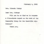 [012] February 6, 1941. Memorandum from the Director’s Desk to Bishop, asking her to compose a report on the Community Group for the Knoxville conference.