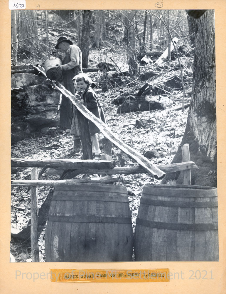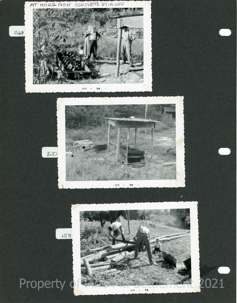 TAGS: Photographs, occupations, homes, Frona Cooper family, Marian Kingman, Aunt Nancy, Lawrence Cooper, log cabins, logging, farming, haystacks, sorghum, sugar cane, Dry Fork, maple sugar camp,