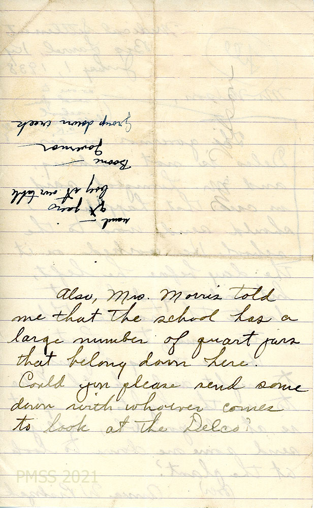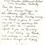 [025] March 8, 1928. To Wulf at Big Laurel, KY, from EZ (Zande), who is interested in Wulf’s suggestion to stay at PMSS this summer, suggesting a housemothering job. “I am so glad you are enjoying the little school….”