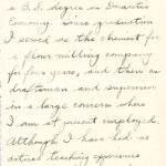 [001a] Reverse side of [001]. Wulf writes that she could teach other subjects as well if she has time to prepare. “I am dependent upon myself for support. My father and mother are partially dependent upon me. However, if $75.00 with expenses is too high, I should consider a little lower salary, provided it is liveable.”
