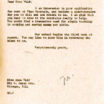 [055] July 1, 1938. To Mr. Wilson from Pishzak, asking for help with “our Delco” so that there will be lights for a party that night. [056] Notations on the reverse side of [055].