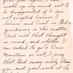 [011] through [011c] June 2, 1925. Four-page letter to Zande from Wulf concerning her meeting with Whittaker. [011b – page 2] She understands she is “under a serious handicap in not having had more teaching experience.” [011a – page 3] But she believes “that where God calls He also enables.” She has also applied to a missionary board but prefers PMSS.