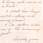 [013] through [013c] June 15, 1925. Four-page letter to Zande from Wulf, who accepts Zande’s offer. Asks about equipment; whether to bring suitcases or a trunk; class sizes; whether workers use the swimming pool.