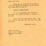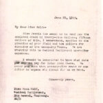 [022] June 2, 1927. To Wulf in Chicago from EKW (Evelyn K. Wells), wishing her a “fine vacation and a good rest.” Wells asks Wulf to send new pictures, which will be used in the School’s literature. Mentions Miss [Dorothy] Bolles and Miss Cunningham’s orders. “Mrs. Zande and Berto went with Miss [Abby] Christensen and Miss Burger to South Carolina…Miss [Ruth] Gaines, Miss Heney and Miss Davis…went by but as far as possible towards Washington.”