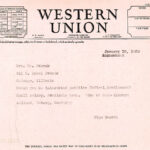 [041] January 16, 1938. Western Union telegram to Morris from Pishzak, accepting the position.