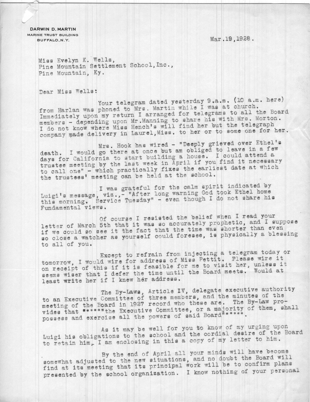 - 1928-03-19 D.D. Martin to Evelyn Wells regarding death of Ethel de Long Zande, page 01. [martin_012.jpg]