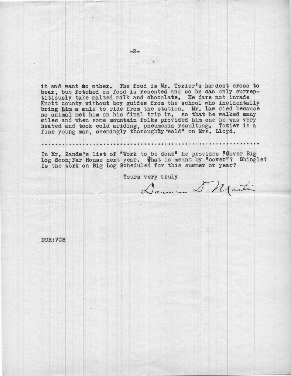 - 1928-07-17 D.D. Martin to Evelyn Wells, page 02. [martin_021.jpg] RE: article by Lucy Furman sent to S.C. Tozier, auditor at Caney Creek Community Center.