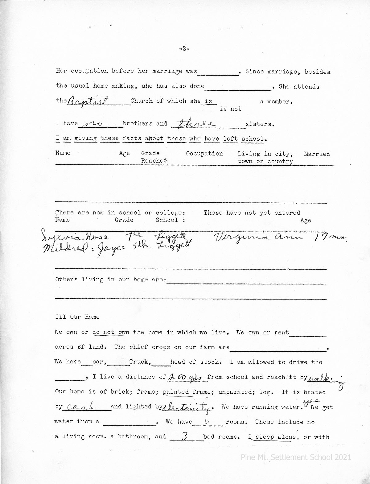 Mentions Sylvia (his sister) and Don’s withdrawal from PMSS. “Sylvia just wanted to be home this year and go to Hall Hi. She was urged by her parents to return to Pine Mountain. As for Don, he was anxious to try his luck on the football field.”