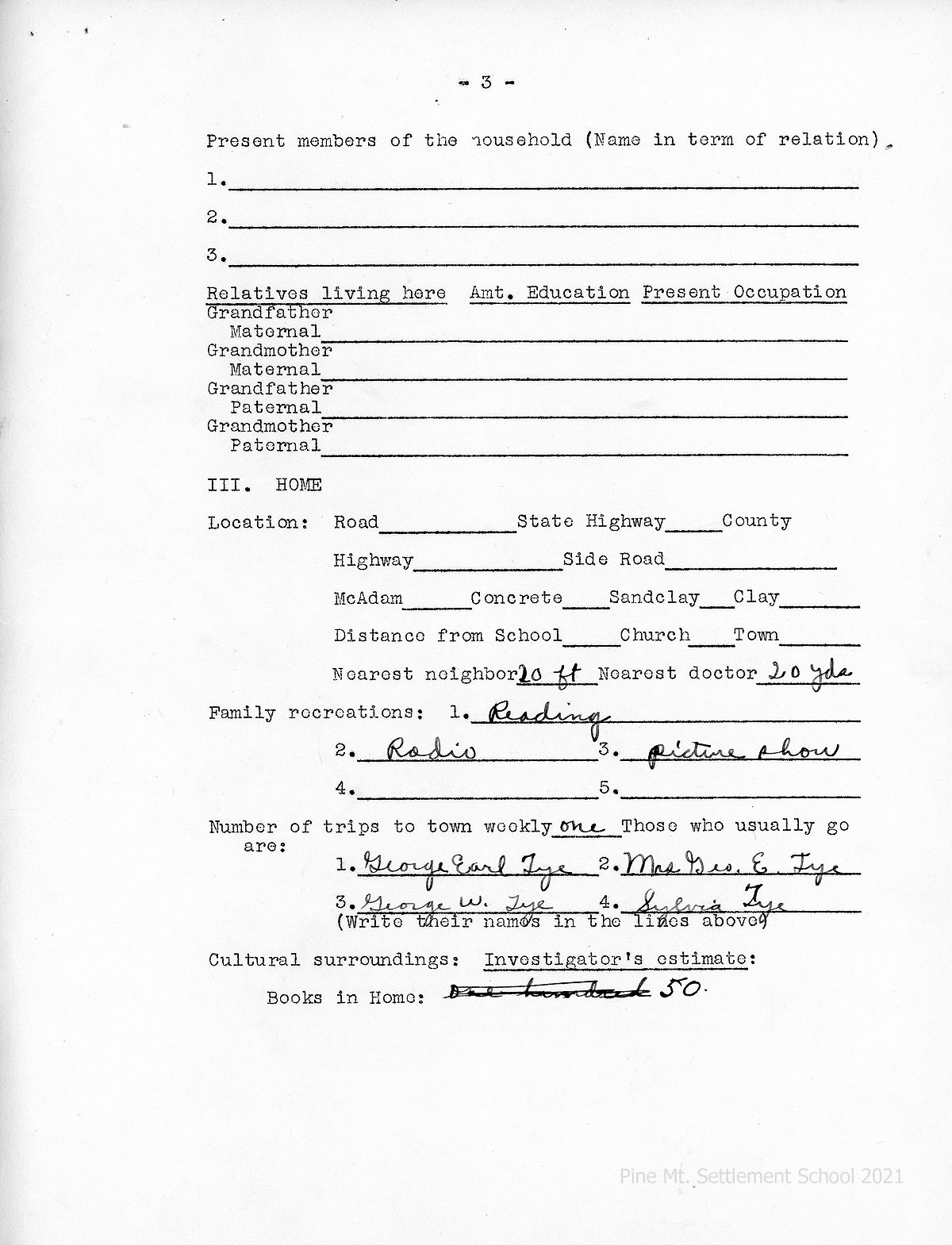 [03b] HOME AND PARENTS RECORD, page 3, Home. Family Recreations: Reading, radio, picture show. See [02b].