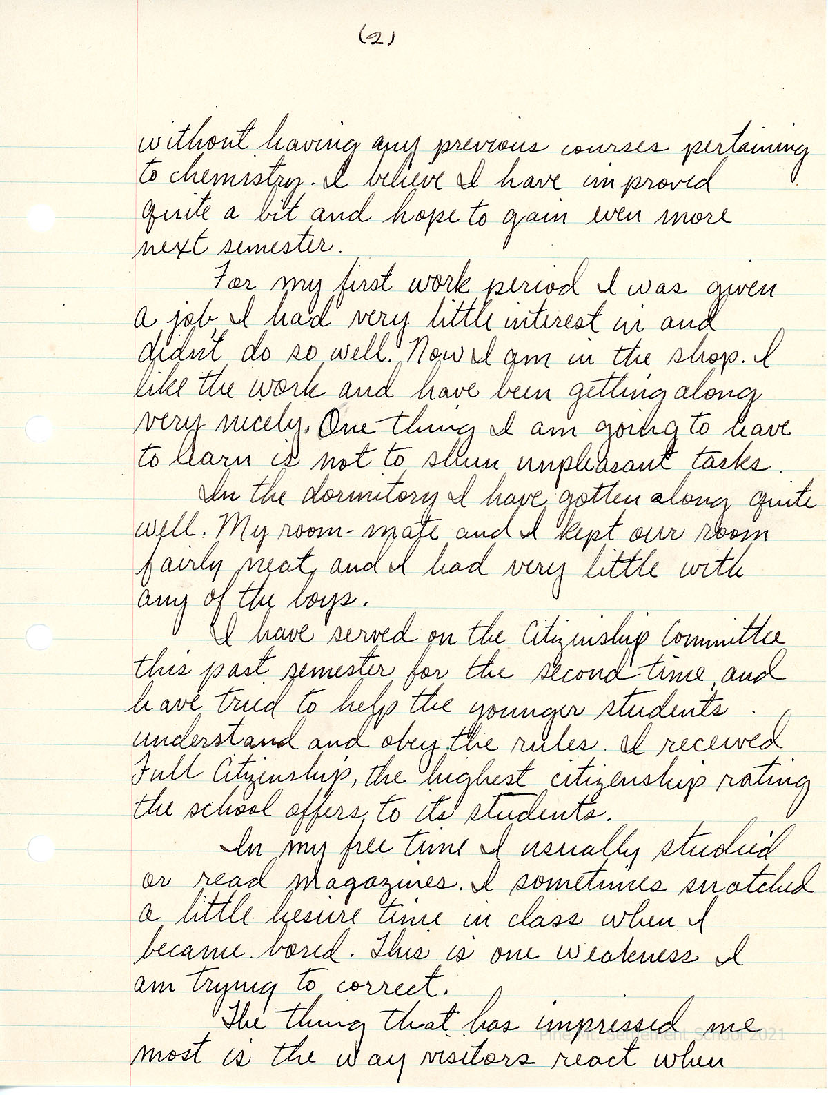 He served on the Citizenship Committee last semester for the second time. “I received Full Citizenship, the highest citizenship rating the school offers to its students.” He was most impressed with “the way visitors react when examining the campus and school activities. Sometimes aloof at first, the simple friendliness of the students and workers soon melts the ice and they become one of us.”