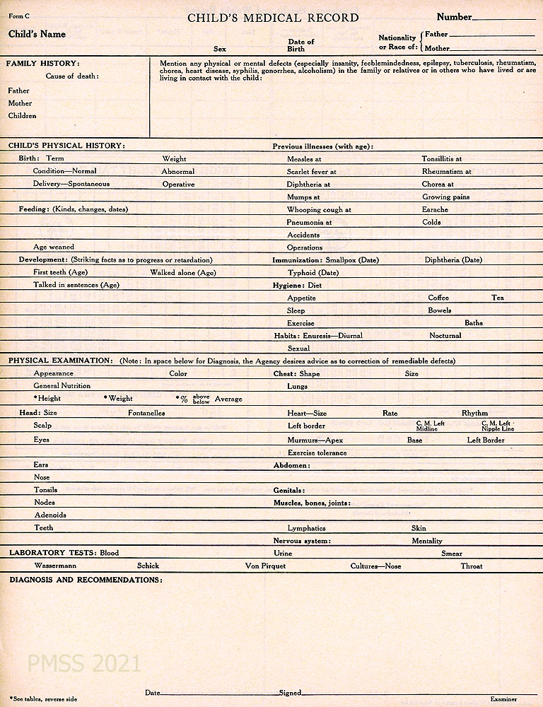 [032], [032a] N.D. Two-page blank form titled “CHILD’S MEDICAL RECORD.”