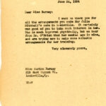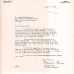 [029] August 14, 1924. To Zande from Barney, responding to Zande’s letter about J.M. “I am sorry that we can do nothing for her here.”