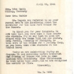 014 April 29, 1944. To Mrs. Edna Smith, Gilley, KY, from Mr. Webb, responding to her inquiry about a caretaker summer job at Line Fork Cabins. “We are told that you were once a Pine Mountain Student…. Mr. Boone Hall and his sister, Mrs. Powell, recently of Michigan, [have been hired] to take care of the Cabins…. They, as you know, were also students at the School here.” Mentions May Day and Miss (Abby) Christensen’s visit.