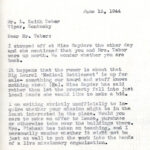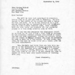 054 August 18. 1944. To Miss Vitatoe from (unsigned), Secretary. Mr. Benjamin asked that Vitatoe return before she had planned. “The Infirmary is very short of help… Miss Rood is gone and Maxine is planning to go home this weekend.’