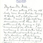066-066a  N.D. Two-page handwritten letter from Miss Webster to Webb, asking if she can donate back issues of the Reader’s Digest; and if he will send a list of magazines the School currently has. “I am a retired teacher on the loose, planning to visit your school next March…at the suggestion of Miss Spinney, a fellow alumna of Boston Univ.”