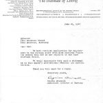 [007] June 25, 1947. To PMSS Director (Benjamin) from Regina Driscoll, Associate Director of Nursing, The Institute of Living, Hartford, CT, who received an application from Vaughn and requests “a statement as to (Vaughn’s) professional standing and nursing ability.”
