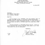 [26] June 24, 1957. To “Principal” from John V. Landes, Education Advisor, Office of Education Services, Eglin Air Force Auxiliary Field #9, Florida. He requests an official high school transcript for George W. Tye, who “is currently enrolled with Florida State University in their ‘Bootstrap’ program.” Encloses a “Secondary School Record” form to be filled out.