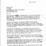 [32] April 23, 1959. To Tye from Rogers, who is sending Tye’s transcript to the address Tye had given. Rogers asks that Tye send letters directly to him instead of the Principal. “All records of former boarding students, from the private high school, are here in my office.”