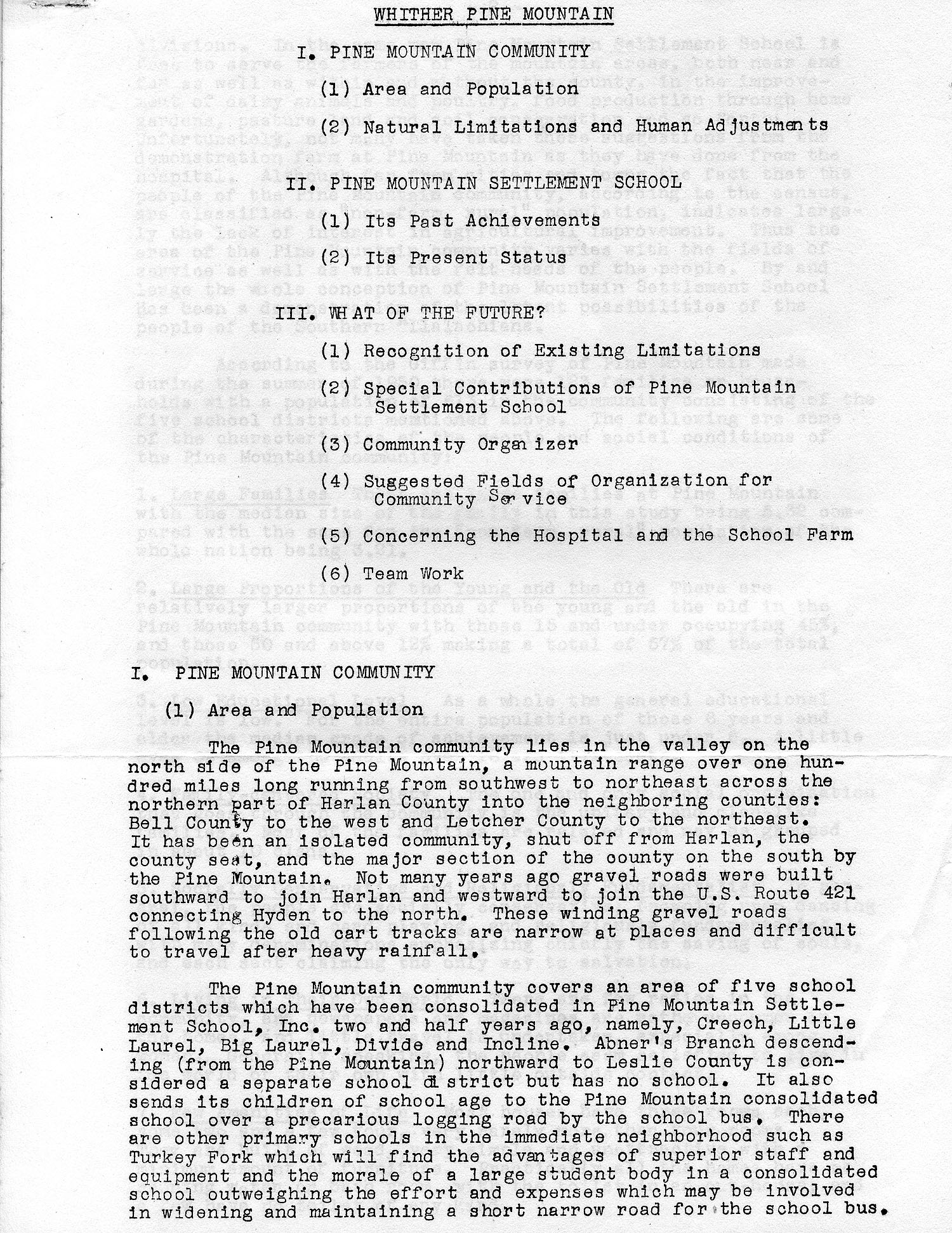 II. PINE MOUNTAIN SETTLEMENT SCHOOL