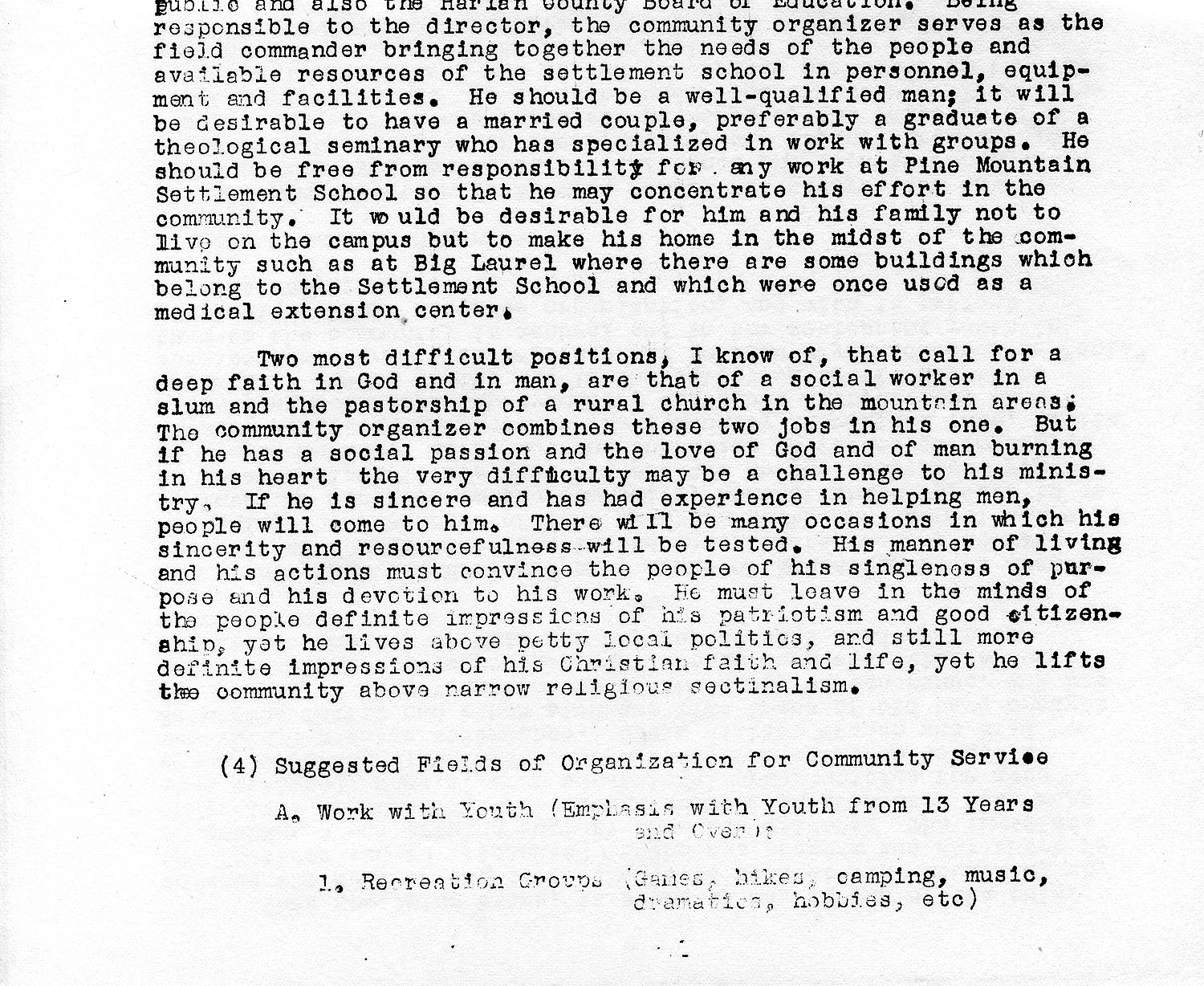 (4.) Suggested Fields of Organization for Community Service