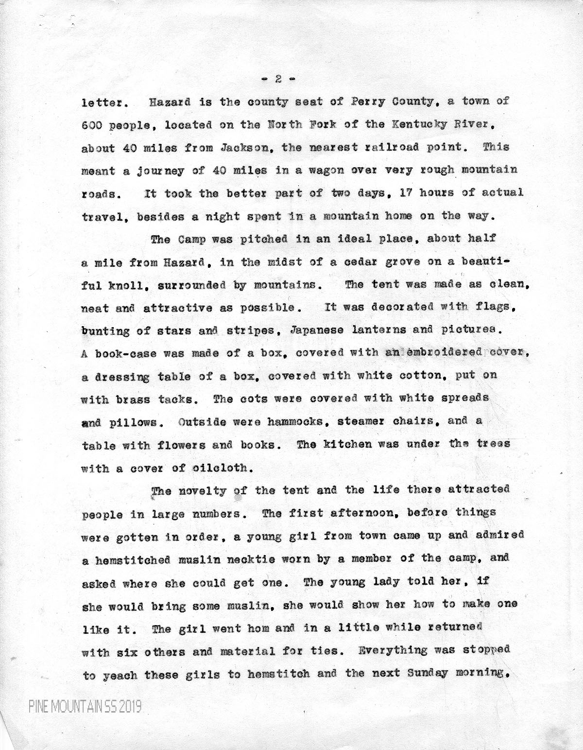 The first of August, the committee, consisting of four members, went to Hazard and established a Camp for six weeks, to work along the lines suggested in Mr. Mitchell’s*