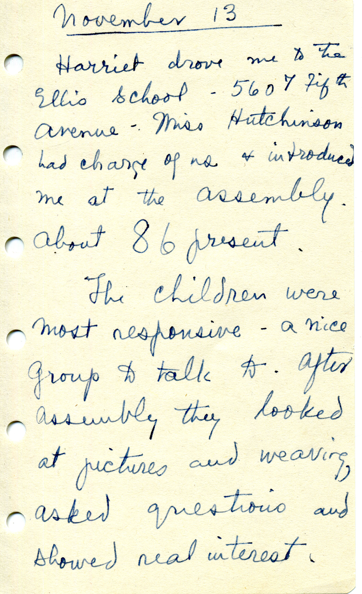 November 13 | Ellis School - Pittsburgh | Miss Hutchenson | 86 | Showed pictures & homespun |