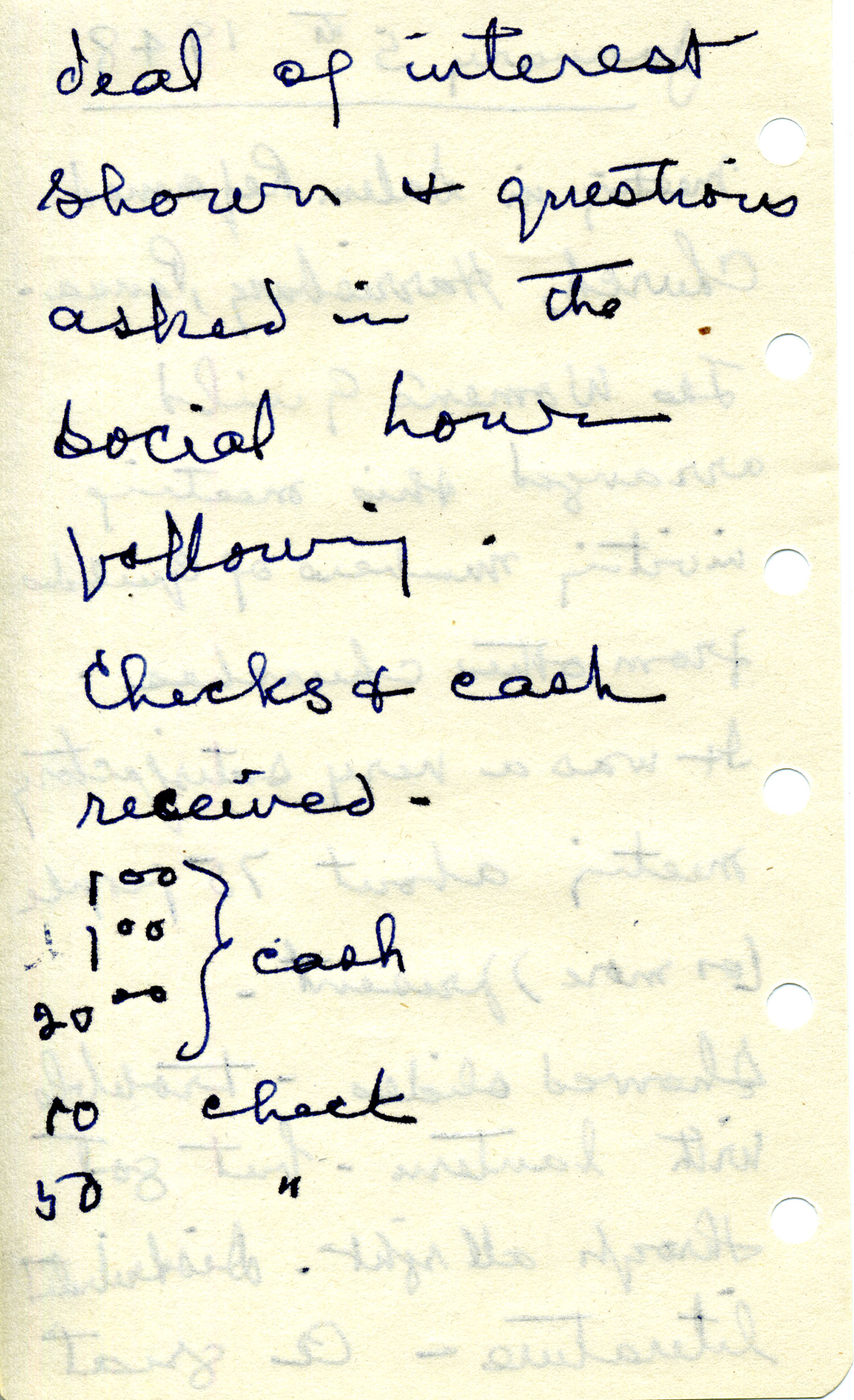 February 24 | Personal visit in Philadelphia | Conference with Miss Kathryn Post regarding future meeting in West Collingswood, N.J. | ||