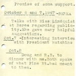 October 6-7 | Berea, Ky. | Conferences with Miss Lindquist and President Hutchins. Also looking up P.M. students | ||