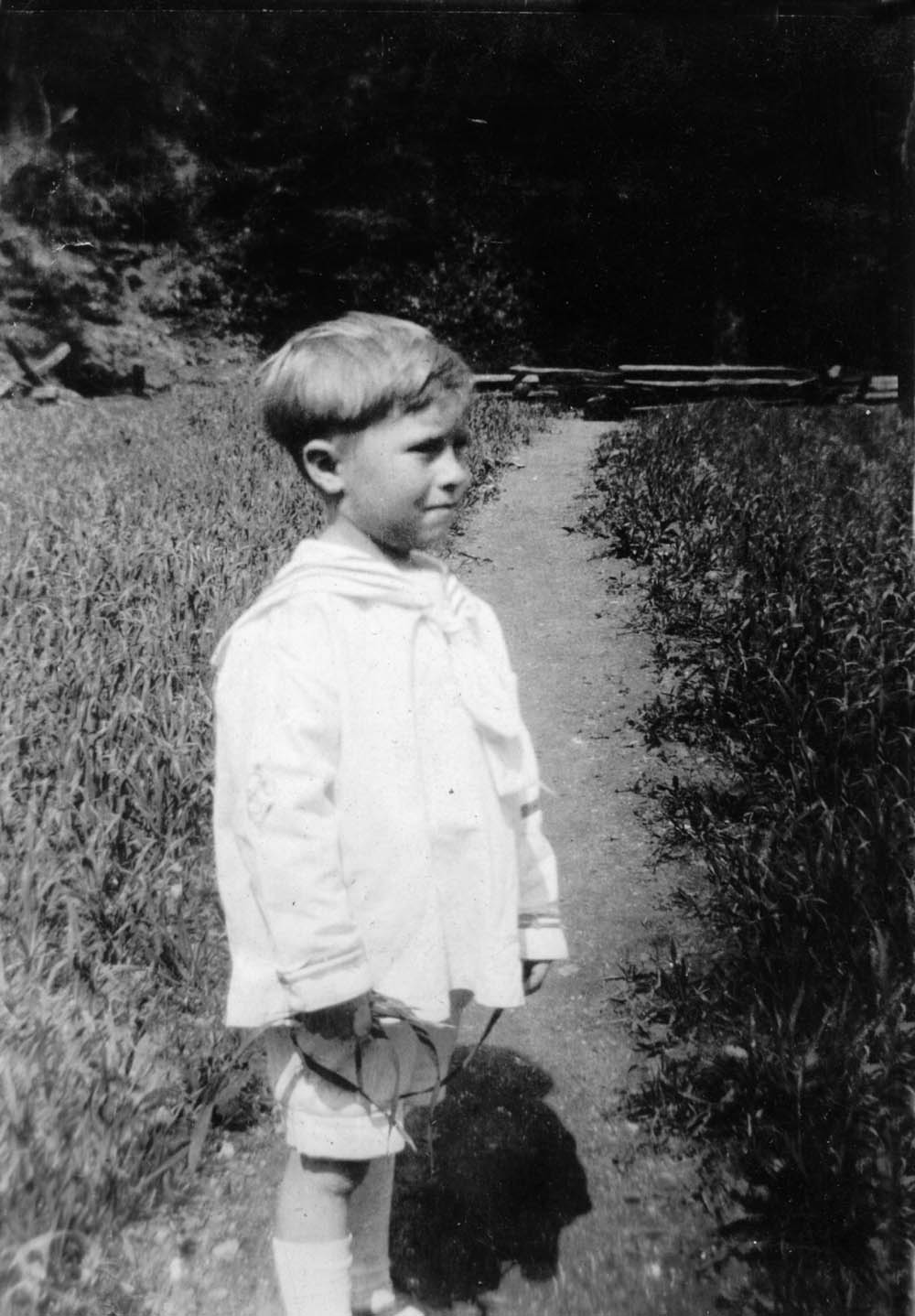 - Little boy dressed in light clothing standing in path. FN Vl_35_1124