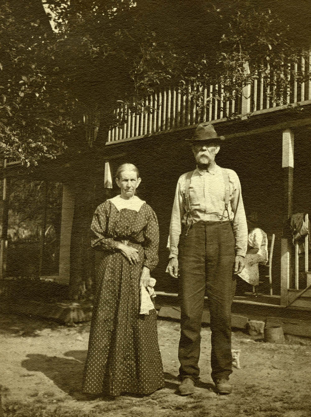 - Elderly man and woman standing in front of two-story house. FN Vl_35_1142