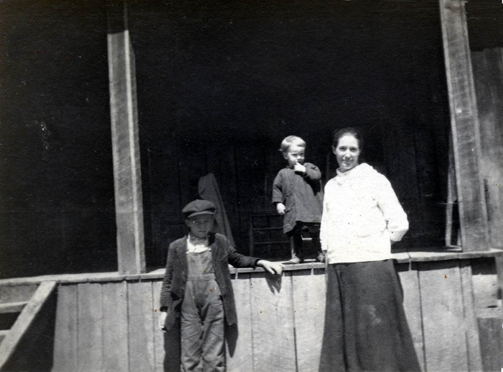 - “Aunt Jude.” Woman seated with two infants in her lap and other children standing on porch of home. FN [Vl_35_1147.jpg]