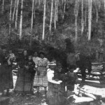 - Ritchie family portrait. (Nine people standing in front of shingle- roofed building with wreath on outside wall.) FN [Vl_35_1149.pg]
