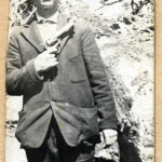 - Young man standing and holding gun against his chest. He wears hat and boots. FN Vl_35_1148
