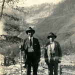 - Two men standing with mountains in background. Man in shirt and tie to left holds a walking stick. FN Vl_35_1152