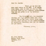 074-075 October 12, 1927. Two-page letter from Martin to Mrs. Zande. While attending the Fair of the Iron Horse, B.&O. Centenary in Baltimore, Martin talked with Dr. Burnham at the Johns Hopkins Dispensary about Zande’s health. “He made me happy with his assurances that beyond the wisdom of precautionary visits to Louisville…, he really anticipated no need of your further treatments at the Dispensary.”