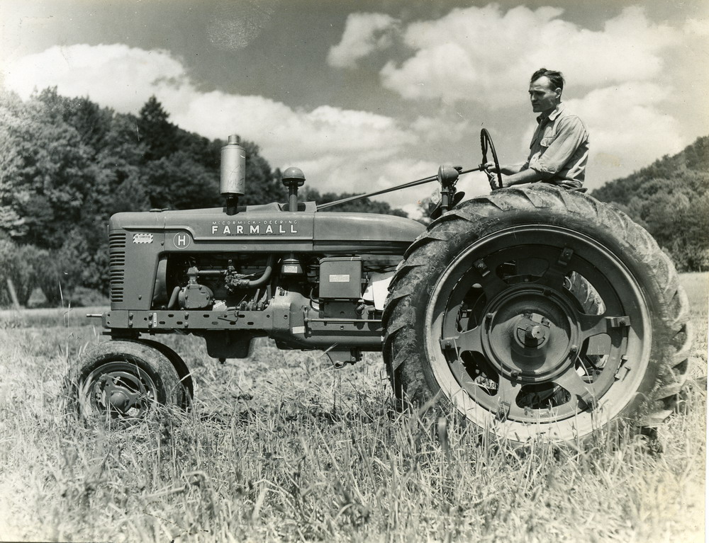 William Hayes on new Farmall Tractor at PMSS, c. 1943.
