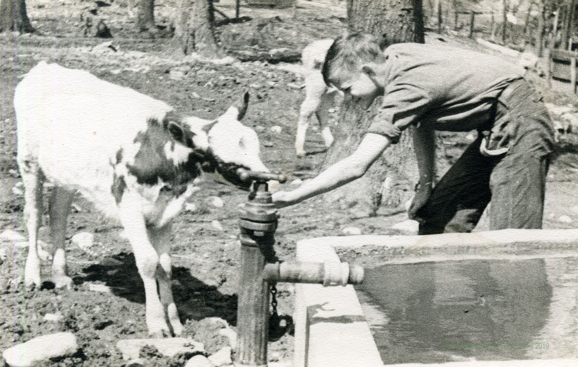 “My immediate focus of interest was the garden and dairy, particularly the garden, with its 5000 cabbage plants, rows of Kentucky Wonder beans, and large patches of Swiss chard, potatoes, turnips, onions lettuce radishes, corn, and other seasonal vegetables for the summer table — all of which, when stored or canned, would provide a substantial part of our menu during the ensuing school year. …” [Morris, Less Traveled …p. 49 ]
