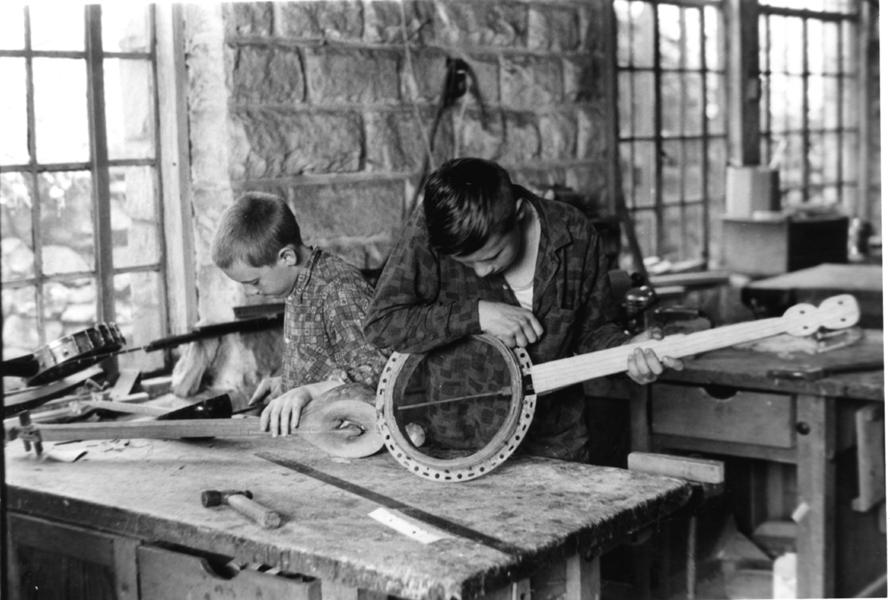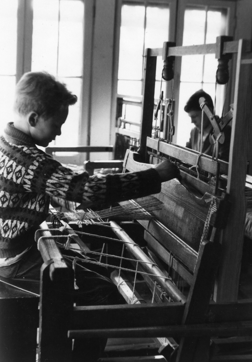 Many of the activities captured in the photographs include classroom instruction, craft projects, woodworking shop, making musical instruments and weaving. During the Community School years craft activities for the community were also provided after school hours and when the School closed many of the craft and woodworking opportunities continued for the community.