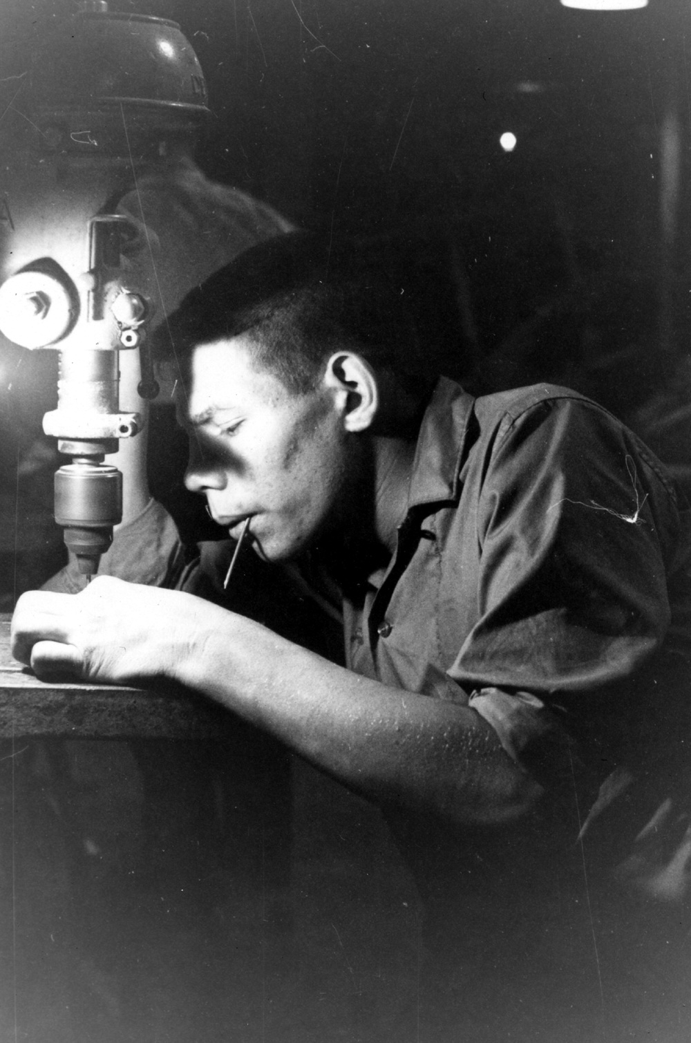 Also in the collection are a scattering of images from the 1940s when photographers Ray Garner and his wife Virginia came as representatives of the Harmon Foundation and on request of Pine Mountain, to photograph life of the campus. Ray Garner later became an internationally known photographer who developed several unique techniques in documentary film. The craft and industrial activities during the 1940s were integral to the educational programs of the school and were often part of the labor assignment of the students in industrial activities that repaired automobiles, built furniture, weaving runners for furniture, and other activities. The atmosphere was decidedly a work-study environment.